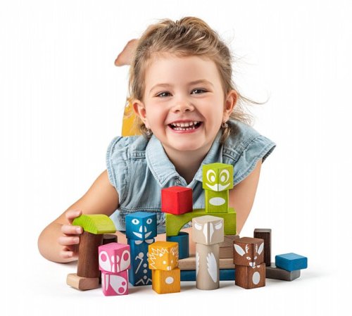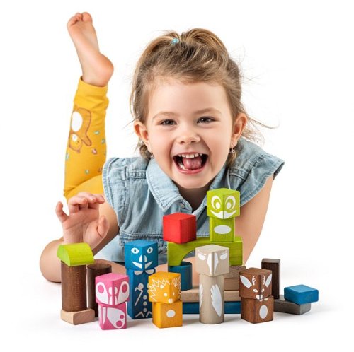 S barevnými kostkami značky Woody s motivem lesních zvířátek v líbivých barvách si děti užijí legraci a navíc potrénují jemnou motoriku. Děti mohou stavět domečky, hrady, komíny, ohrady pro zvířátka a další stavby. Balení obsahuje 26 barevných kostek. Velikost jedné kostky cca 3 cm. Vhodné pro děti od 1 roku.