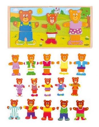 Oblíbená dřevěná "oblékací" skládačka pro malé děti s medvědí rodinkou.