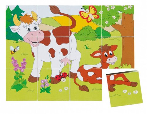 WOODY Obrázkové kostky Zvířátka v ročním období, 12 kostek