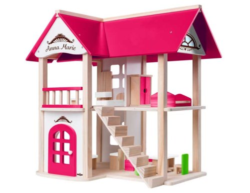 Vila Anne-Marie je precizně provedený výrobek s množstvím designových a funkčních prvků. Má magnetický odnímatelná balkon, variabilní schody a funkční dveře na pantech. Díky otevřeným prostorům je snadno přístupný ve všech místnostech. Je vyroben v kombinaci materiálů: masivní dřevo a dřevovláknitá deska, čímž je odlehčena celá jeho konstrukce. Všechny místnosti jsou vybaveny nábytkem z masivního dřeva.