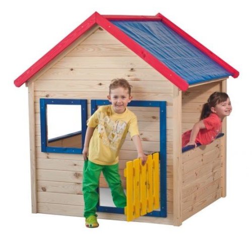 Domeček je vyroben z přírodního materiálu - smrkového dřeva, střecha domečku je s PVC fólií, bez podlahy. Barva domečku je přírodní, pouze rámy oken, dveří a střechy jsou barevně lemovány. Žlutá dvířka jsou opatřena panty (kování je součástí balení).