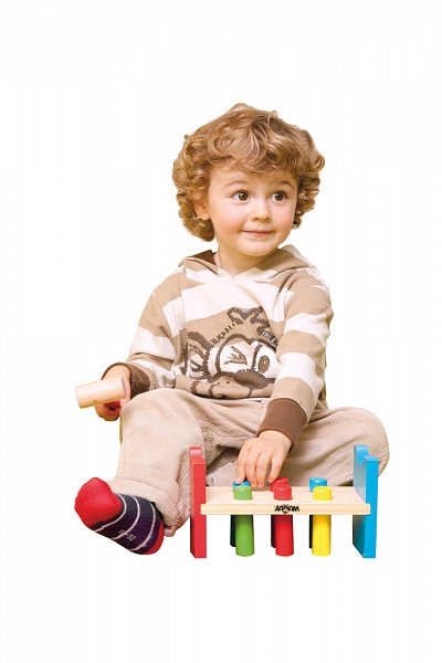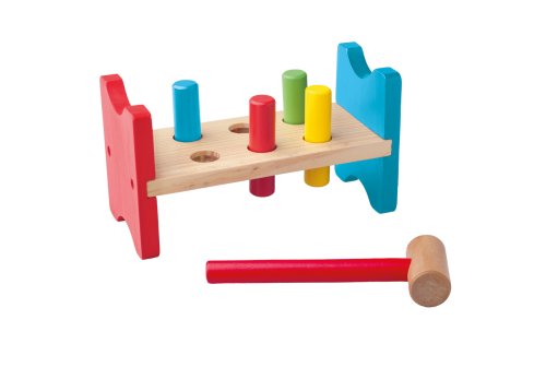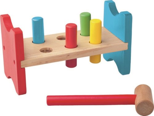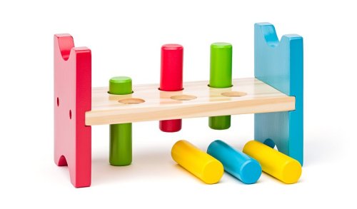 Dřevěná zatloukačka je výborná hračka pro malé kutily. Dítě při hře zatlouká dřevěné kolíky do otvorů v desce a učí se tak trpělivosti. Hračka také podporuje koordinaci pohybů.
