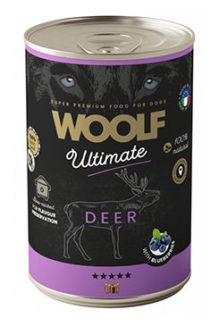 Kompletní krmivo pro dospělé psy, vlhké krmivo s jelením masem a borůvkami.