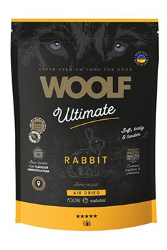 Čerstvý králík 45 %, čerstvé vepřové maso 30 %, čerstvé ryby 10 %, hydrolyzovaný škrob, glycerin, řepné řízky, kmín, WoolfGastroprotect (esenciální oleje (oregano, tymián, rozmarýn, cejlonská skořice, hřebíček), suchý extrakt ze zeleného čaje, ß-glukany a mannan-oligosacharidy (MOS) extrahované ze Saccharomyces cerevisiae), pufrovaný ocet.