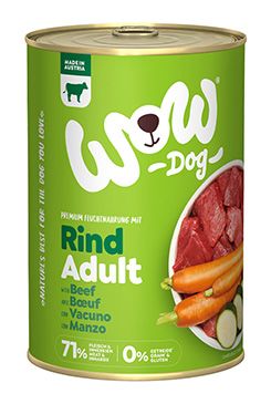 WOW Hovězí s karotkou je kompletní mokré krmivo pro dospělé psy všech plemen se 71% obsahem masa a vnitřností od předního rakouského výrobce. Maso je doplněno zeleninou, bylinkami z Alp a vysoce kvalitním lněným olejem. Konzervy jsou ručně plněné v rodinné rakouské firmě z místních, většinou alpských, surovin ze zdravé přírody.