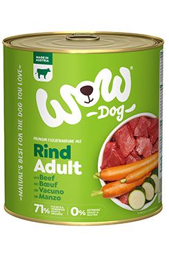 WOW Hovězí s karotkou je kompletní mokré krmivo pro dospělé psy všech plemen se 71% obsahem masa a vnitřností od předního rakouského výrobce. Maso je doplněno zeleninou, bylinkami z Alp a vysoce kvalitním lněným olejem. Konzervy jsou ručně plněné v rodinné rakouské firmě z místních, většinou alpských, surovin ze zdravé přírody.