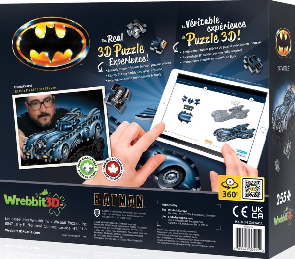 Poskládej si model automobilu gothamského temného rytíře. Roztřiďte, složte a vytvořte 3D model. Trojrozměrné puzzle WREBBIT kombinuje výzvu a zážitek. Puzzle se skládá podle referenčních obrázků na krabici a černobílého obrázkového návodu. Díky důmyslně navrhnutému tvaru a tloušťce dílků drží u sebe bez nutnosti lepení.