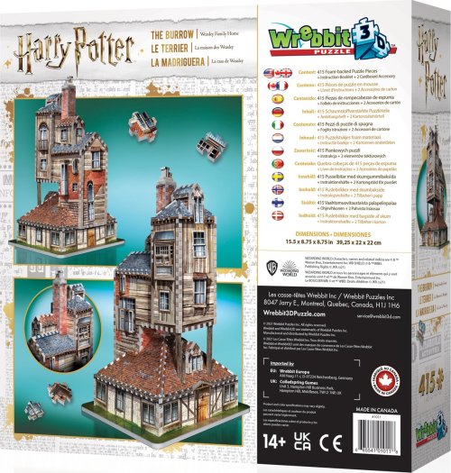 Rodinný dům Weasleyových, kde najde domov každý dobrý kouzelník a čarodějka! Poskládej si Doupě , kde žije rodina rusovlasých kouzelníků a léto zde tráví i Harry Potter. Roztřiďte, složte a vytvořte 3D model. Trojrozměrné puzzle WREBBIT kombinuje výzvu a zážitek. Puzzle se skládá podle referenčních obrázků na krabici a černobílého obrázkového návodu. Díky důmyslně navrhnutému tvaru a tloušťce dílků drží u sebe bez nutnosti lepení.