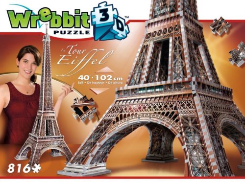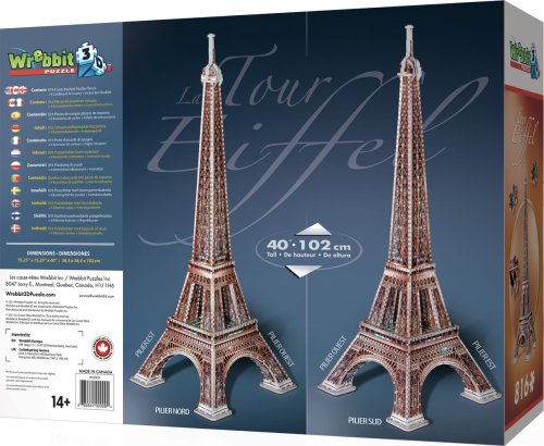 Replika více než 100 cm vysoké Eiffelovy věže je vyrobena z více než 800 dílků. Zapojte do stavby tohoto mistrovského díla celou rodinu a společnými silami vytvořte slavný pařížský monument. Roztřiďte, složte a vytvořte 3D model. Trojrozměrné puzzle WREBBIT kombinuje výzvu a zážitek. Puzzle se skládá podle referenčních obrázků na krabici a černobílého obrázkového návodu. Díky důmyslně navrhnutému tvaru a tloušťce dílků drží u sebe bez nutnosti lepení.