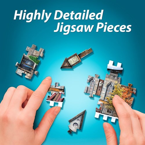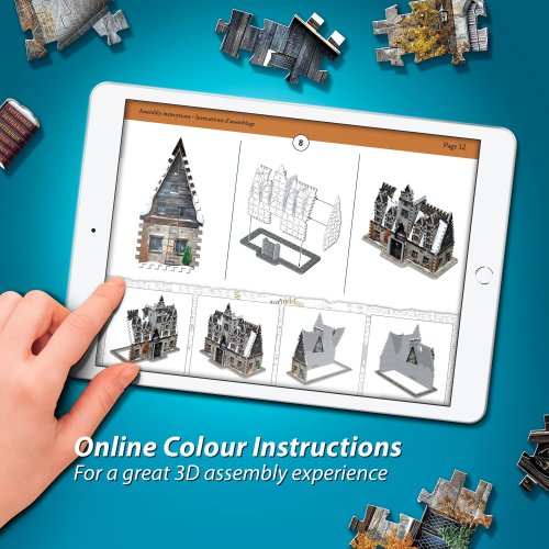 Toto 3D puzzle lze spojit s dalšími modely, pomocí kterých si vytvoříte část Příčné ulice. Poznámka: Dílky označené červenými tečkami byly nezbytné pouze pro výrobu, nejsou však součástí samotného 3D puzzle. Můžete je proto z krabice rovnou vytřídit, odložit stranou a uschovat si je až do dokončení skládačky. Proč? Protože během třídění i to nejbystřejší oko přehlédne správný dílek, který omylem skončí mezi červeně tečkovanými. Rozměr složeného puzzle cca 31 x 16,5 x 30,5 cm
