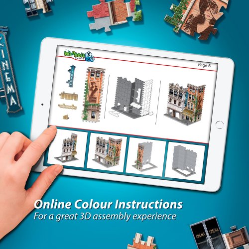 Postavte si vlastní městečko se stylovými budovami! Poskládejte si budovu kina, jednu ze čtyř částí z kolekce Urbania od kanadského výrobce Wrebbit. Roztřiďte, složte a vytvořte 3D model. Trojrozměrné puzzle WREBBIT kombinuje výzvu a zážitek. Puzzle se skládá podle referenčních obrázků na krabici a černobílého obrázkového návodu. Díky důmyslně navrhnutému tvaru a tloušťce dílků drží u sebe bez nutnosti lepení.