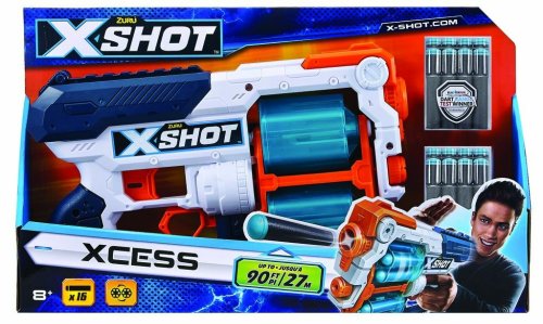 Toto je zbraň pro opravdové střelce. Díky dvěma otočným zásobníkům na 6 nábojů budete vždy připraveni ke střelbě. S tímto super koltem dostřelíte na vzdálenost až 24 metrů. Věk: 8 +. Obsah: zbraň s dvěma otočnými zásobníky a 16 nábojů.