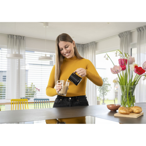 • ideální výška; nádoba se pohodlně vejde pod napěňovač většiny kávovarů