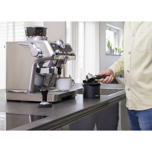 • nádoba na zbytky kávy je vyrobena z nerezové oceli 304 a pojme až 13 kávových puků z páky