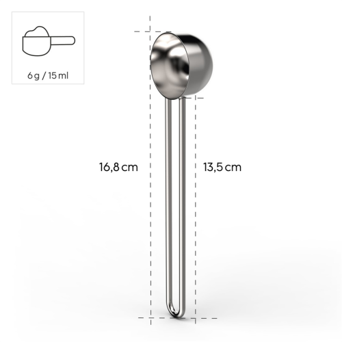 - mimořádně kvalitní a odolná odměrka z ušlechtilé ocele - jednoduché dávkování mleté kávy, kakaa nebo sypaného čaje - vhodná i pro jakékoli sypké přísady na vaření (cukr, mouka, kypřící prášek do pečiva, …