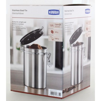 Xavax dóza na 1 kg mleté kávy nebo jiné potraviny, vzduchotěsná, ušlechtilá ocel, stříbrná