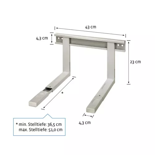 - univerzální držák pro mikrovlnné trouby, grily a ostatní elekrická zařízení - jednoduchá montáž na stěnu - nastavitelná hloubka a délka - stabilní a bezpečné umístění přístroje - nosnost: max. 30 kg …