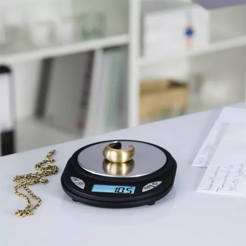 • digitální váha na vážení drobných předmětů jako např. zlata, stříbra, mincí, šperků, drahých kamenů, listů apod. s hmotností do 500 g