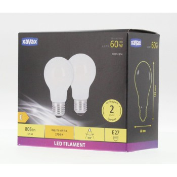 Xavax LED Filament žárovka, E27, 806 lm (nahrazuje 60 W), teplá bílá, matná, 2 ks v krabičce