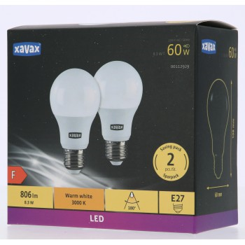 Xavax LED žárovka, E27, 806 lm (nahrazuje 60 W), teplá bílá, 2 ks v krabičce (cena za balení)