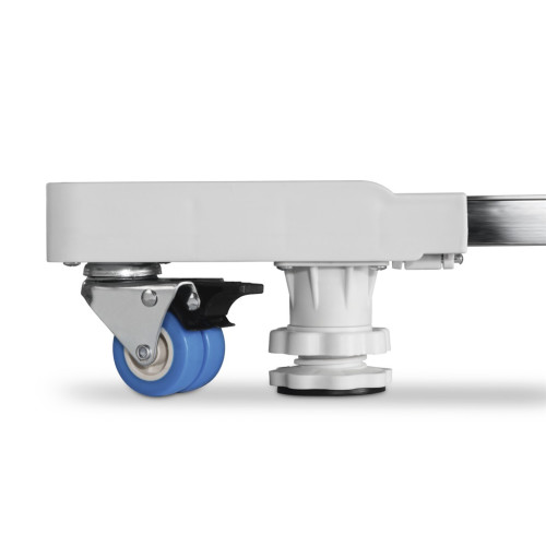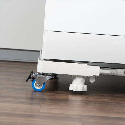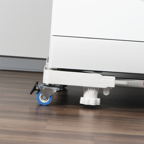• čtyři otočná kolečka, každé s brzdou, pro pohodlné přesouvání a bezpečné postavení spotřebiče, takže spotřebič můžete používat i když je umístěn na podstavci