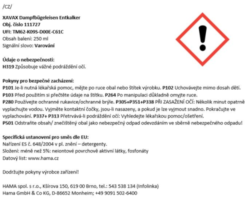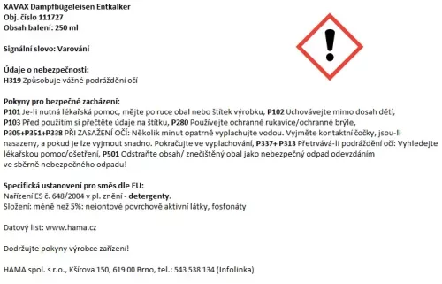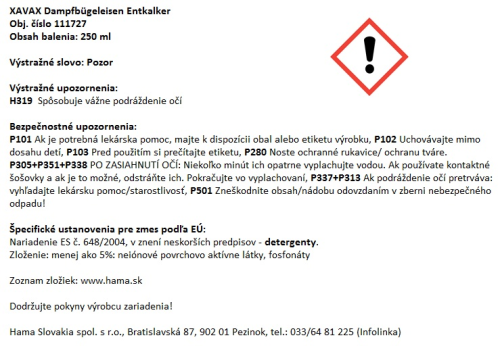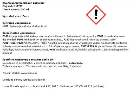Xavax odvápňovací přípravek pro napařovací žehličky, 250 ml
