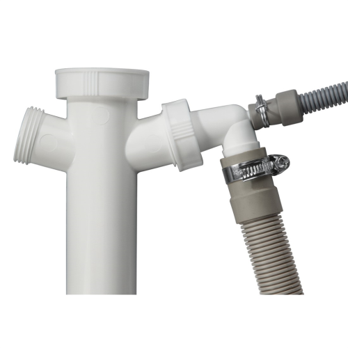 - na připojení odtokových hadic pračky anebo myčky nádobí do odpadové roury/sifónu - druhé připojení pro odtokové hadice kondenzační sušičky prádla - 1" (33,7 mm) přesuvná matice - 1x 20 mm přípojka …