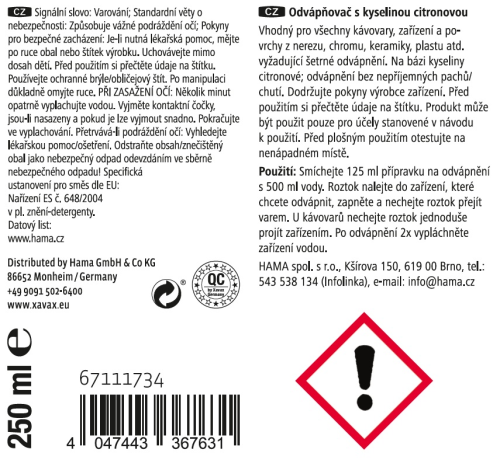 Prostředek na bázi kyseliny citronové odvápní bez nepříjemných pachů a chutí povrchy z nerezové oceli, chromu, keramiky i plastu.