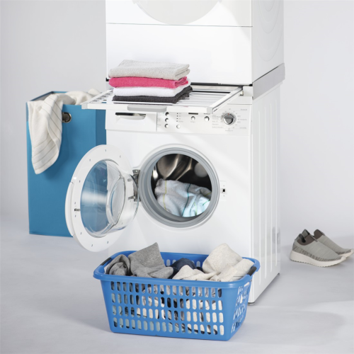 integrovaný výsuvný sušák (nosnost 10 kg) na menší kousky prádla nebo jako šikovná polička na koš na prádlo