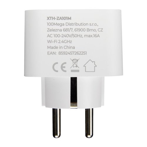 Chytrá Wi-Fi zásuvka sloužící k měření příkonu připojených zařízení a jejich zapínání či vypínání. Zásuvka funguje s aplikací Tuya Smart a podporuje i aplikace třetích stran Alexa hlasový asistent a Google domácí asistent.