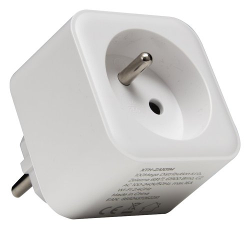 Chytrá Wi-Fi zásuvka sloužící k měření příkonu připojených zařízení a jejich zapínání či vypínání. Zásuvka funguje s aplikací Tuya Smart a podporuje i aplikace třetích stran Alexa hlasový asistent a Google domácí asistent.