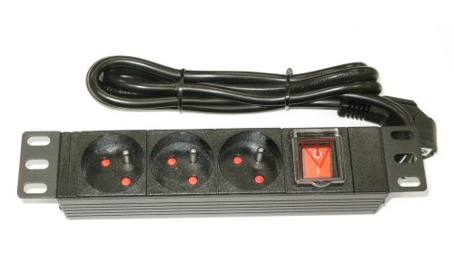 10" rozvodný panel 3x 230 V, zásuvky dle ČSN, indikátor napětí/vypínač, výška 1U, 1,8 m dlouhý přívod.