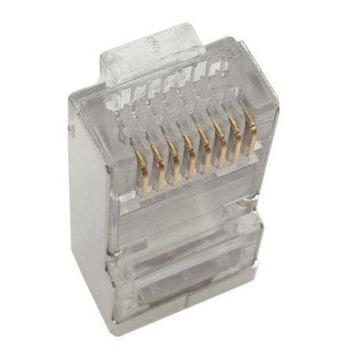 Stíněný STP konektor RJ-45 pro zakončení kabelů strukturované kabeláže.
