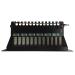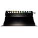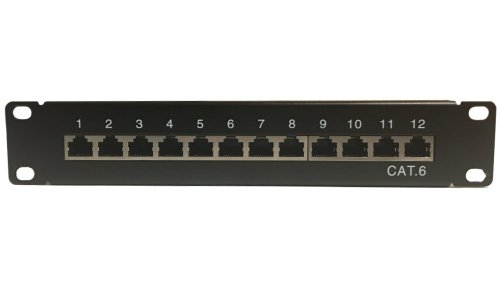 Patch panel osazený 12 porty s Cat.6, vhodný pro narážeč typu LSA. Vnitřní kryt patch panelu dovoluje manipulaci v malé skříni bez rizika vytáhnutí kabelu ze zářezového konektoru. Vyvazovací koncovky dovolují pevně přitáhnout kabelový vývod k panelu. Součástí zařízení je zemnící přívod a napojení stínění přímo na PCB.