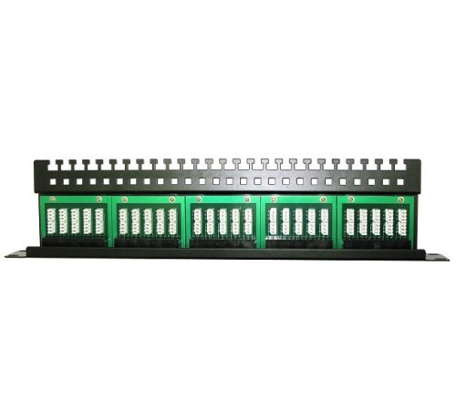 Telefonní patch panel 1U/19", 25x port Cat3, rozměry zadní desky 430 x 106 mm.
