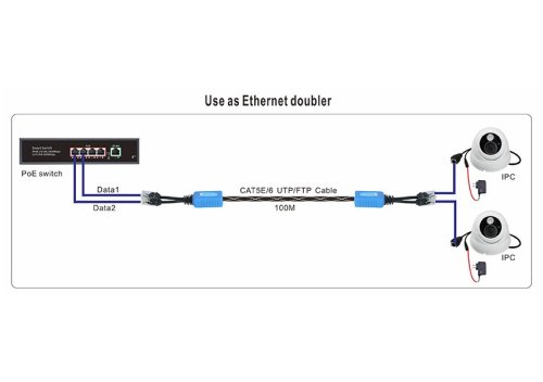 Multifunkční RJ-45 splitter/extender dokáže spojit dva PoE vstupy (2× 25 W - 802.3at) a zdvojnásobit tak napájecí výkon, nebo přenášet data ze dvou ethernetových vstupů pomocí jednoho kabelu.