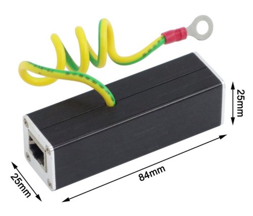 Ochrana podporuje přenosové rychlosti 10/100/1000 Mbps včetně PoE (Power over Ethernet) a chrání dva páry vodičů (1, 2 a 3, 6). Zařízení je vybaveno zemnícím vodičem pro bezpečný odvod přepětí do země. Kompaktní hliníkové pouzdro o rozměrech 85 × 25 × 25 mm a hmotnosti 80 g umožňuje snadnou instalaci v jakémkoli prostředí.