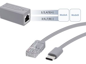 Tento PoE splitter umožňuje napájet zařízení s USB-C konektorem přímo z PoE sítě. Zařízení přijímá napětí DC 44–57 V z PoE zdroje kompatibilního se standardy IEEE 802.3at/af a převádí ho na stabilních DC 5 V s proudem 2,4 A (12 W). Ideální řešení pro napájení IP bezpečnostních kamer, VoIP telefonů, bezdrátových přístupových bodů a dalších síťových zařízení s USB-C napájením.