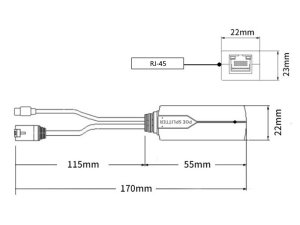 Splitter disponuje třemi porty: RJ-45 PoE vstup pro příjem dat a napájení, RJ-45 LAN výstup pro datové připojení a USB-C výstup pro napájení koncového zařízení. Datový přenos probíhá rychlostí až 10/100 Mbps s maximálním dosahem 100 metrů po síťovém kabelu Cat5E nebo vyšším.