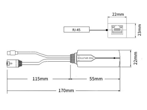 Splitter disponuje třemi porty: RJ-45 PoE vstup pro příjem dat a napájení, RJ-45 LAN výstup pro datové připojení a micro USB výstup pro napájení koncového zařízení. Datový přenos probíhá rychlostí až 10/100 Mbps s maximálním dosahem 100 metrů po síťovém kabelu Cat5E nebo vyšším.