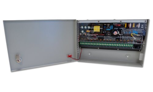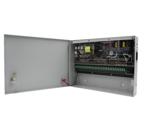 Stabilizovaný napájecí zdroj pro šestnáct spotřebičů, nastavitelné napětí DC 11-14 V, každý port max. 1,5 A. Celkový výstupní proud 12 A. Skříňka na zeď s instalovaným PCB, kabelové průchodky. Připojení kabelů k interní svorkovnici. Ochrana proti zkratu PTC termistory, 1,5 A na port. LED signalizace funkčnosti portů.