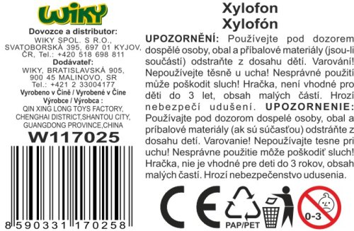 S barevným xylofonem si děti užijí spoustu zábavy a legrace. Mimo jiné si dobře procvičí své sluchové vnímání. Velikost 26 cm. Rozměry balení 14 x 32 x 4 cm. Vhodné pro děti od 3 let.