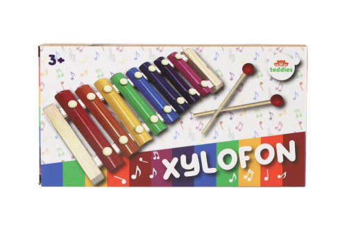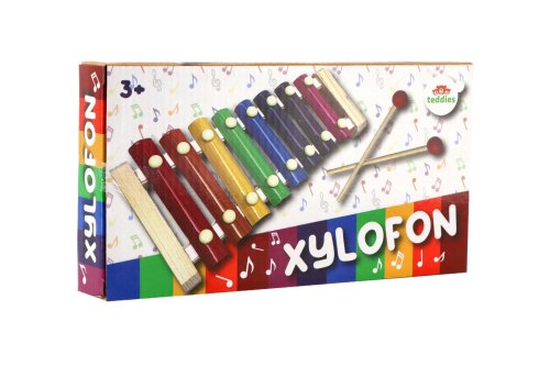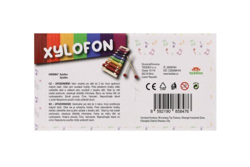 Krásně barevný dětský xylofon vyroben z kombinace dřeva a kovových různě velikých desek, díky kterým se dítě učí jednotlivé tóny a učí se hrát jednoduché melodie skladeb pomocí dvou hůlek. Hračka rozvíjí smysly pro možnost hudební tvorby a pro rytmus. Velikost xylofonu: 24 cm Rozměr balení: 25 x 13 x 4 cm Vhodné pro děti od 3 let