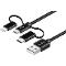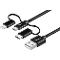 Konektor: USB A 2.0 / USB typ C, Micro USB, Lightning Přenos dat: až do 480 Mb/s Nabíjecí proud: Micro USB: 2.1A USB C: 3A Lightning: 2,4A Délka: 1 m