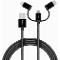 Universální datový a nabíjecí kabel vhodný pro všechny typy chytrých zařízení popdoruje rychlé nabíjení a vysokou přenosovou rychlost. Díky rozhraní 3v1 je kabel ideální do auta, na cesty nebo kdekoli, kde bude potřeba připojit různé typy chytrých zařízení. Kabel disponuje Micro USB konektorem, USB C a certifikovaným Lightning konektorem. Dokonalý hliníkový plášť a odolný nylonový oplet zajistí odolnost, flexibilitu a dlouhou životnost kabelu.