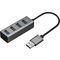 Hliníkový rozbočovač 4× USB 3.0 Technologie Plug & Play Rychlost přenosu dat až 5 Gb/s Kompaktní hliníkové tělo a modrý LED indikátor