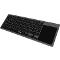 Multimediální funkce Vestavěná dobíjecí baterie Vysoce citlivý 4,5" touchpad Bezdrátová klávesnice 2.4G s velkým touchpadem je ideální pro ovládání notebooku, počítače nebo chytrého televizoru v obývacím pokoji nebo kanceláři. Pomocí známých kombinací gest na 4,5" touchpadu můžete spouštět klepnutí myší, ukazování, změnu velikosti, přetáčení a další běžné funkce. Multimediální klávesy umožňují spouštět a ovládat některé z nejčastěji používaných aplikací stiskem jediné klávesy. Kompaktní rozměry klávesnice a její ergonomický design v kombinaci s tichými klávesami poskytují dokonalý zážitek z psaní. Multimediální klávesnice se nabíjí prostřednictvím standardního rozhraní USB-C a její vestavěná dobíjecí lithiovábaterie s kapacitou 230 mAh zajišťuje pohodlné používání bez nutnosti starat se o výměnu baterie. Indikace LED vás upozorní na vybití baterie. Určeno pro použití v domácnosti a/nebo kanceláři Funkce úspory energie prodlužuje životnost baterie.