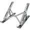 Přenosný Snadno složitelný 6 úrovní nastavení Přenosný kovový stojan pro tablety a notebooky do velikosti až 15.6"" umožňuje nastavení až 6 různých pohledových úhlů. Jednoduchý způsob složení umožňuje vzít držák sebou do kanceláře, domů nebo na cesty. Součástí balení je látkový pytlík pro lepší přesnost držáku. Protiskluzové prvky zajišťují stabilitu při práci a ochranu proti poškrábání vašeho zařízení. Možnost nastavení až 6 pohledových úhlů podporuje lepší ergonomii těla při práci. Notebook využijete jako stolní počítač. Konstrukce držáku zlepšuje chlazení vašeho notebooku při práci.