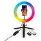 10" LED kruh Dálkový ovladač & BT shutter 29 barevných variant podsvícení Natáčejte videa a streamujte na sociláních sítích ve skvělé kvalitě obrazu. Pomocí speciálního stativu a kruhového LED osvětlení budete mít vždy výborné světelné podmínky pro natáčení, focení a streamování na populárních soc. sítí jako je např. TikTok. Na výběr je až 29 barevných variant podsvícení. 3 základní odstíny bílé (studená, neutrální, teplá), která dodá vašemu projektu na profesionalitě. 13 statických a 13 dynamických RGB barevných variant podsvícení pomůže dosáhnout originální scény pro stream, tvorbu fotek a videí na populární sociální siti TikTok. Pro každou z 29 barevných variant můžete nastavit až 8 různých úrovní jasu a navodit tak optimální atmosféru pro natáčení videa. Součástí balení je dálkový ovladač, kterým LED osvětlení zapnete/vypnete a dále volíte mezi základním osvětlením v podobě studená bílá, neutrální bílá a teplá bílá nebo mezi RGB osvlětlením, ve kterém máte na výběr až 13 statických a 13 dynamických barevných variant. Samozřejmostí je možnost nastavení jasu. K dispozici je také dálková selfie spoušť, kterou připojíte pomocí Bluetooth k vašemu telefonu a můžete pořitovat snímky nebo videa přímo v akci. Na napájecím kabelu je fixní ovladací panel pro rychlou manipulaci s LED osvětlením. Nabízí rychlé funkce jako zapnout/vypnout případně nastavení jasu. Universální držák mobilního telefonu a LED kruhové osvětlení je možné individálně polohovat a otáčet o 360° . Universální držák je vhodný pro mobilní telefony až do šírky 80mm. Kruhové LED osvětlení o průměru 10"" a nastavitelný stativ jsou vhodné pro domácí i profesionální použití. LED osvětlení je napájeno konektorem USB A a potřebuje minimální výkon 10W.