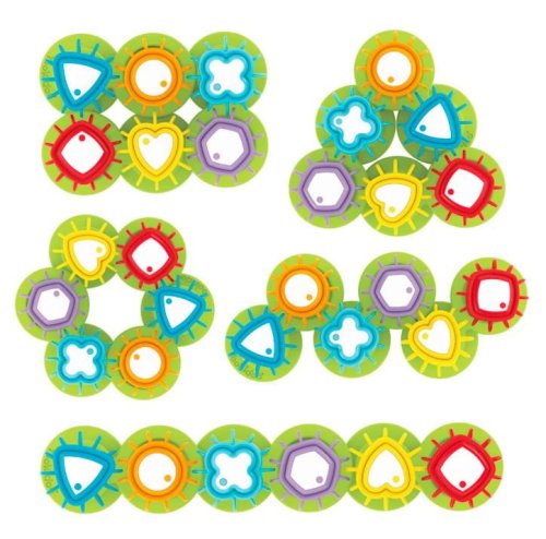 Inovativní hračka, která naučí děti barvy a tvary. Ozubené tvary se umisťují na flexibilní základnu, kterou lze tvarovat a přetvářet v různé obrazce. Bez ohledu na rozložení základny se budou ozubené tvary vždy točit.